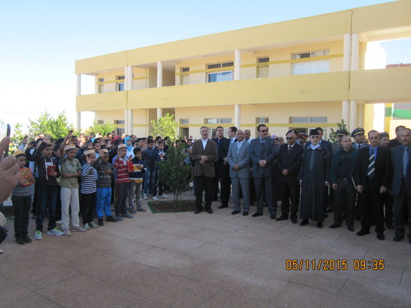 افتتح الاحتفال بترديد النشيد الوطني، الذي أداه الجميع، وتعالت أصوات التلاميذ في أرجاء المؤسسة بكلماته الخالدة. بعده، أدى الحضور الكريم قسم المسيرة الخضراء. ثم انتقل الوفد الرسمي إلى جانب من الساحة المدرسية على نغمات  » الواد وادي ياسيدي، والساقية الحمراء ليا »، حيث تم غرس أشجار تخليدا لهذه الذكرى الغالية، والتي غرست قيما وطنية نبيلة في نفوس المتعلمات و المتعلمين.