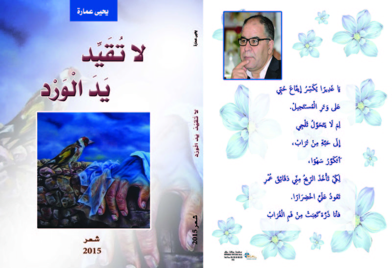 صدر للشاعر المغربي يحيى عمارة ديوان شعري يحمل عنوان »لا تُقَيِّدْ يَدَ الورد »، لوحة الغلاف بريشة الفنان المغربي :لطفي اليعقوبي ،الطبعة الأولى 2015،عن مطبعة وراقة بلال بفاس .وهو العمل الشعري الثالث للشاعر بعد ديوان »فاكهة الغرباء »،وديوان « لن أرقص مع الذئب »،من الحجم المتوسط،وعدد صفحاته أربع وعشرون ومائة صفحة 124)ص)،موزعة على  خمسة وعشرين نصا شعريا، حيث جاءت   النصوص مكتوبة بمكونات الكتابة الشعرية الجديدة وبإيقاعات  مختلفة بين قصيدة التفعيلة وقصيدة النثر،وبخطاب شعري يتأسس على جماليات الرؤية الشعرية المغايرة ،التي تستشرف سمات البحث عن خصوصيات التجربة الشعرية في علاقتها بالحياة والوجود والفكر المنفتحة على المرجعيات المتعددة والصور الإيحائية المكثفة والرؤى الإنسانية  الكبرى.ومن بين النصوص ،يمكن ذكر:لا تقيد يد الورد،أجنحة الريح،سكون المساء،فتنة الغيم،بوح،طفلة من ثلج،عصفورة تئن بريح البقاء،أنشودة إيلان، سمك جائع،حيرة المنجميين،موت بسيط،مجنون في الحانة،استغاثة السوسن،ناي المتاه،تغريبة الأخضر بن يوسف،التائهة،حديث النوارس،رسالة إلى الماء،طاغور،رنين الحلم،رمل الغياب،في غفلة من ليل العشق،عصير الصداقة،خبايا العاشق،في بريد القمر.