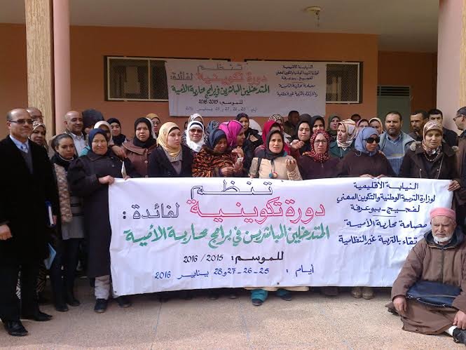 بتنسيق مع الوكالة الوطنية لمحاربة الأمية، و في إطار تفعيل المخطط الإقليمي للتكوينات في برامج محاربة الأمية ،انطلقت يوم الإثنين 25 يناير2016 الدورة التكوينية لفائدة المتدخلين المباشرين في برامج محاربة الأمية التي نظمتها النيابة الإقليمية لفجيج -مصلحة محاربة الأمية والارتقاء بالتربية غير النظامية-بالمركز الإقليمي للتكوين المستمر ببوعرفة الذي امتد طيلة أربعة أيام :25/26/27و28 يناير 2016 .