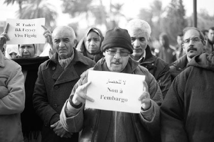 Aucune montagne ne sera accessible, même la vue sera fermée ! Nous voilà donc dans une cité-dortoir-cage-caserne-cimetière hautement surveillée. Figuig étouffe, elle s’effondre, elle se meurt ! Nous avons perdu nos terres dont une partie est passée en Algérie.» Les habitants ont marché, brandissant des pancartes sur lesquelles on peut lire «Figuig n’est pas à vendre».