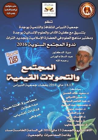 جمعية النبراس للثقافة والتنمية بوجدة تنظم ندوة المجتمع السنوية 2016 : المجتمع والتحولات القيمية