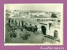 De temps à autre , les vieux bus de couleur rouge brique, parqués au milieu de la place, démarrent les uns après les autres et traversent difficilement la place en frayant passage parmi la foule, laissant entendre un bruit assourdissant de vieux moteurs de moulins à grains, fumant, pleins à craquer, perdant des fois l’équilibre aux freins brusques et aux tournants, évitant de justesse des piétons distraits et des cyclistes venant d’en face . Des charrettes chargées et tirées par une bête et auxquelles s’attellent discrètement des mômes, ou poussées par un homme annonçant plusieurs fois BALAK ! S’MAE BALAK ! (enlève-toi !) traversent difficilement. Le porteur d’eau (EL GARRAB) avec sa tunique et son outre en peau de chèvre (L’GARBA) munie d’un petit robinet passe devant vous le buste décoré par ses petites tasses en cuivre luisant en train de vous faire entendre le tintement régulier et discontinu de sa petite clochette vous excitant les tympans pour s’annoncer aux assoiffés. Le vendeur de KARANE (préparation à base de pâté de pois chiches et d’œufs mis au four) poussant hâtivement sa voiturette pour ne pas rater l’entracte de seize heures au cinéma NASR passe inaperçu. C’est une sacrée foire populaire.