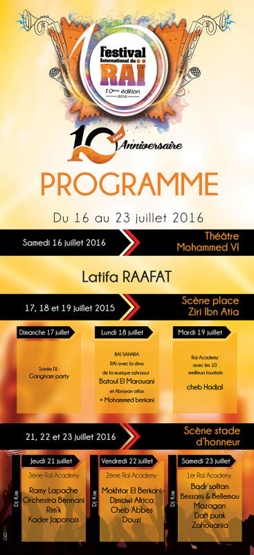 برنامج النسخة العاشرة لمهرجان الراي بوجدة من 16 الى 23 يوليوز2016