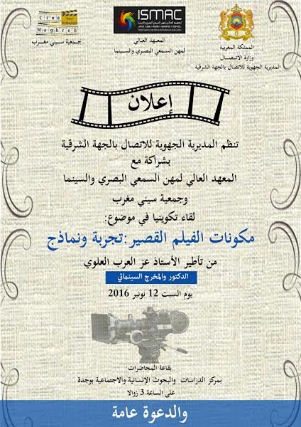 تنظم المديرية الجهوية للاتصال بالجهة الشرقية بشراكة مع المعهد العالي للسمعي البصري والسينما  ، وجمعية سيني مغرب  لقاء تكوينيا في موضوع : مكونات الفيلم القصير : تجربة ونماذج