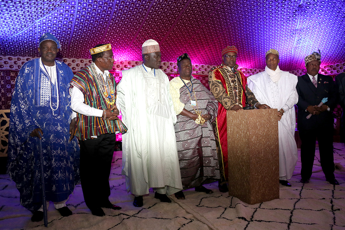 In this context and in perfect response to His Majesty’s statement, the “Oriental” Region of Morocco organized, with the support Morocco’s Ministry of the Interior, the CGLUA (United Cities and local Governments of Africa) and the ARM (Association of Moroccan Regions), the first encounter with several African regions and Chiefs of traditional authority of Africa, on Sunday 13th of November 2016 in the Marrakech Palace Namaskar.