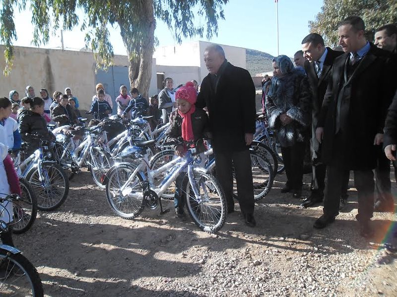 ترأس  السيد محمد مهيدية  والي جهة الشرق عامل عمالة وجدة أنجاد صباح يوم الإثنين9 دجنبر 2017على الساعة العاشرة صباحا عملية انطلاقة  توزيع الدراجات الهوائية على تلاميذ مجموعة مدارس ادريس الأول  ،ومجموعة مدارس عمر الخيام بجماعة عين الصفا ، بحضور وفد هام  من الشخصيات المدنية  والعسكرية ،والسيد محمد ديب مدير الأكاديمية الجهوية للتربية والتكوين لجهة الشرق والسيد محمد زروقي المدير الإقليمي لمديرية وجدة أنجاد ،والسيد رئيس مجلس العمالة ،والسيد رئيس الجماعة القروية عين الصفا  ، وعدد من أطر وموظفي المديرية الإقليمية والسيدات والسادة الأطر الإدارية والتربوية للمؤسسة التعليمية ،تندرج عملية توزيع الدراجات الهوائية في إطار دعم المبادرة الوطنية للتنمية البشرية المخصص لتطوير خدمات الدعم الاجتماعي بالعالم القروي من أجل تشجيع التمدرس ومحاربة الهدر المدرسي حيث استفاد من هذه العملية 300 من تلميذات وتلاميذ المجموعة المدرسية والفرعيات التابعة لها لتسهيل تنقلهم من مقر سكناهم الى المؤسسة التعليمية ،وكذا بغية تحفيزهم على الدراسة والتحصيل وبذل المزيد من الجهد لتحقيق النجاح المنشود. وتسعى هذه المبادرة إلى الارتقاء بمجالات الدعم الاجتماعي بغية تحسين مؤشرات التمدرس ومحاربة كل أشكال الهدر المدرسي من أجل تحقيق الجودة المنشودة والتحفيز على التميز الدراسي. وقد ألقى السيد المدير الإقليمي كلمة بالمناسبة شكر من خلالها السيد والي جهة الشرق على مبادراته الدائمة والمتواصلة من أجل دعم قطاع التعليم بالإقليم وبالجهة كما أشاد بالدور الفعال للمبادرة الوطنية للتنمية البشرية في مختلف الأوراش التربوية موجها الشكر كذلك لمجلس العمالة والمجلس الإقليمي ومختلف الفاعلين والمساهمين في النهوض بقطاع التعليم وتجويد خدماته بالإقليم.