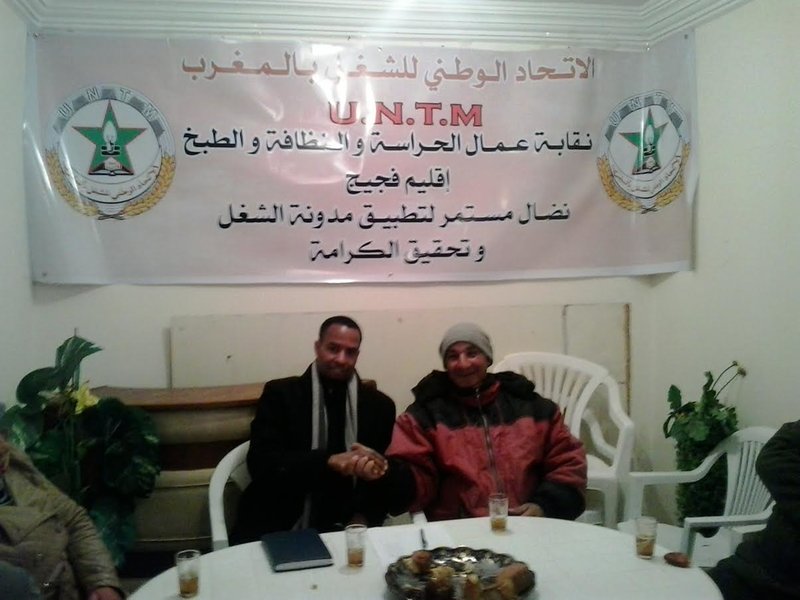 انعقد بحمد الله مساء اليوم السبت 21 يناير 2017 على الساعة الرابعة مساء بمقر الاتحاد الوطني للشغل بالمغرب ببوعرفة جمعا عاما لتأسيس المكتب النقابي الاقليمي لمستخدمي ومستخدمات شركات الحراسة والنظافة والطبخ العضو في الاتحاد الوطني للشغل بالمغرب ، وذلك بإشراف المنسق الاقليمي للاتحاد السيد محمود حداد , تم افتتاح اللقاء بآيات بينات من الذكر الحكيم , وفي جو تسوده روح المسؤولية تم تقديم عرض حول نقابة الاتحاد الوطني للشغل بالمغرب والرؤية النقابية التي تبني عليها ممارستها النقابية , وبعدها تم المرور الى عملية انتخاب اعضاء المكتب الاقليمي حيث تم انتخاب الاخ عفي عبد اللطيف كاتبا اقليميا , والاخ عمر لبيض نائبا له وتم انتخاب سبعة اعضاء اخرين , خلال هذا اللقاء، عبر الاخ عفي عبد اللطيف ، الكاتب الاقليمي عن حرصه على العمل على إعادة الاعتبار للعمل النقابي من خلال تخليقه, و مأسسته حتى يصبح العامل هو المحرك الاساسي للعملية النقابية”. مؤكدا ” أن خلق هذا المكتب النقابي تحكمه اعتبارات نقابية صرفة بعيدا عن أي تجاذبات وأنه منفتح على كل الأطراف التي تسعى إلى خدمة الصالح العام للطبقة الشغيلة “.