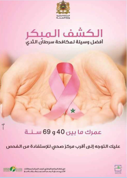 تحت الرئاسة الفعلية لصاحبة السمو الملكي الأميرة للا سلمى ،تنظم مؤسسة للا سلمى للوقاية وعلاج السرطان بشراكة مع وزارة الصحة ،حملة وطنية للتحسيس و الكشف المبكر عن سرطان الثدي , والتي تتواصل إلى غاية 12نونبر2017.تهدف هذه الحملة إلى تحسيس و توعية النساء بأهمية الكشف المبكر لداء سرطان الثدي .وترتكز أنشطة هذه الحملة على النساء اللواتي تتراوح أعمارهن ما بين 40-69 سنة وجميع النساء اللواتي يحملن عامل الوراثة سرطان الثدي من جهة الأم ،ولذلك نهيب بهده الشريحة من النساء، التوجه إلى المراكز الصحية القريبة منهن قصد التحسيس والكشف المبكر عن سرطان الثدي،وهذه بعض المعطيات حول سرطان الثدي في المغرب و العالم :