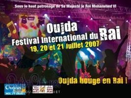 L’association Oujda ARTS, en partenariat avec la Wilaya d’Oujda, a organisé la 1ére édition du Festival International du Rai du 19 au 21 Juillet 2007. Un festival à portée internationale qui a réuni les plus grands artistes du rai.