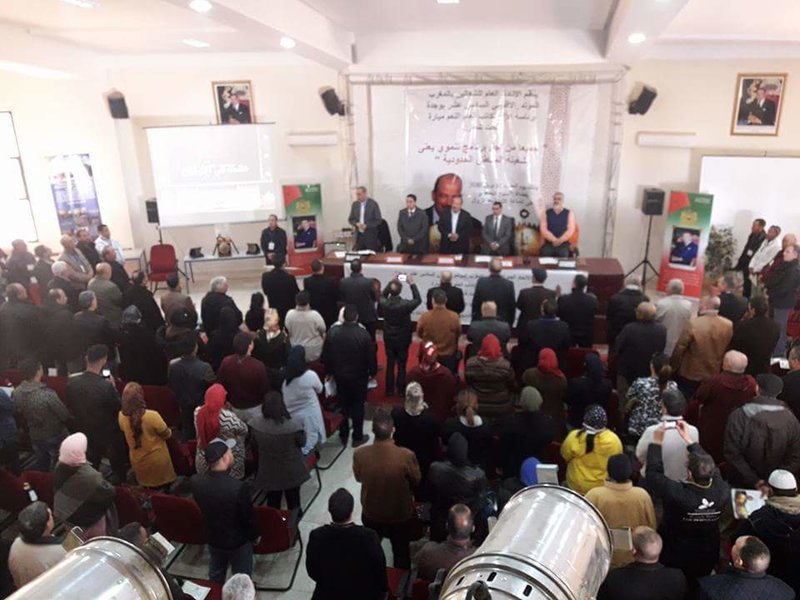 إستهل يوسف سالم رئيس اللجنة التحضيرية السيد ي المؤتمر الاقليمي للإتحاد العام للشغالين بالمغرب و الذي تقدم بالتهنئة الخاصة بمناسبة الذكرى 58 لتأسيس الاتحاد العام للشغالين بالمغرب، التي عرفت نضال و كفاح من أجل أن تعيش الطبقة الشغيلة عيشا كريما، و من أجل المصلحة العامة لفائدة الموظفين و العمال و الأجراء ، و أكد يوسف سالم أن نقابة الاتحاد العام ستبقى صامدة حتى تتحقق مطالب و مكاسب الطبقة الشغيلة المغربية ، و أثنى بهاخلال ختام كلمته .