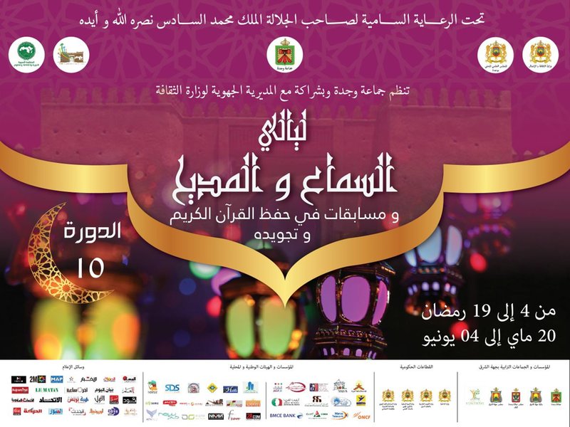في إطار الاحتفال بمدينة وجدة عاصمة للثقافة العربية لسنة 2018، والتي تحظى بالرعاية السامية لصاحب الجلالة الملك محمد السادس نصره الله . تنظم جماعة وجدة بتعاون مع وزارة الثقافة والاتصال والمجلس العلمي المحلي لوجدة، وشركائهم للسنة العاشرة على التوالي ، دورة جديدة من ليالي السماع والمديح خلال شهر رمضان الكريم لعام 1439 هجرية.