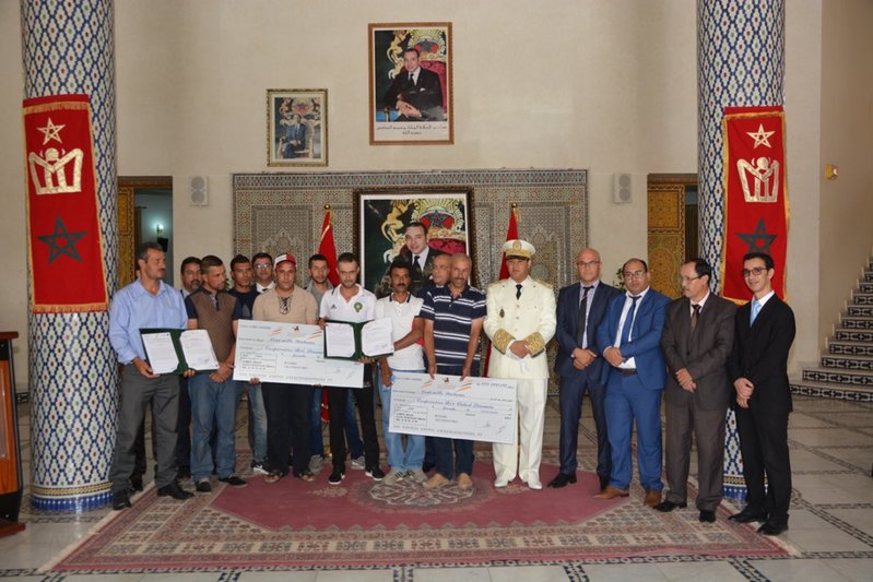 في إطار أجرأة التعهدات التي تم الالتزام بها في سياق التفاعل الإيجابي مع مطالب الساكنة المحلية، لا سيما ما يتعلق بالنهوض بالأوضاع الاقتصادية و الاجتماعية لمستغلي آبار الفحم الحجري بطريقة عشوائية بجرادة( عمال السندريات)، عبر تنظيم الراغبين منهم في مزاولة هذا النشاط في إطار تعاونيات و شركات لضمان تسويق منتوجهم من الفحم للمكتب الوطني للكهرباء و الماء الصالح للشرب ( قطاع الكهرباء) ، أشرف السيد عامل إقليم جرادة صباح يومه الاثنين 30 يوليوز 2018 بمقر العمالة على تسليم رئيس وأعضاء تعاونيتي « ب 12 للتنمية » و « ب 12 واحد للتنمية » بجرادة، شيكين بقيمة 100.000,00 درهم لكل واحد، مقابل الدفعة الأولى من منتوج الفحم الحجري التي تم تسليمها للمحطة بموجب اتفاقية الشراكة بين المكتب الوطني للكهرباء و الماء الصالح للشرب – قطاع الكهرباء- و التعاونيتين السالفتي الذكر والمتعلقة بتزويد المحطة الحرارية بجرادة بالفحم الحجري،بالاضافة الى شهادة التأمين و شهادة الانخراط في الصندوق الوطني للضمان الاجتماعي ، مما سيمكنها من الاستفادة من التغطية الصحية، و التأمين ضد حوادث الشغل و المسؤولية المدنية وبالتالي ضمان شروط السلامة في إطار القانون، وذلك بحضور مدير المحطة الحرارية بجرادة، نائب المدير الجهوي للبنك الشعبي بوجدة ، القطاعات المعنية، رجال السلطة، المنتخبون، رؤساء وممثلو المصالح الخارجية و الامنية ، ممثلو الهيئات السياسية ،المنظمات النقابية ، جمعيات المجتمع المدني ووسائل الاعلام.