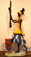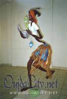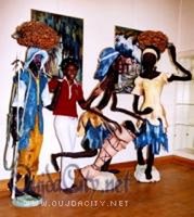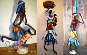 Depuis 2002, Rhode Makoumbou a créé de nombreuses sculptures en matière composée (sciure et colle à bois sur une structure métallique) représentant les métiers des villages qui tendent à disparaître. Certaines ont plus de trois mètres de haut !