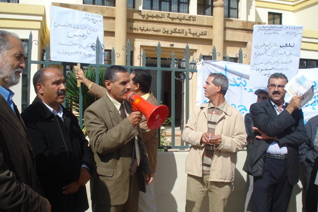 بعد الوقفةالاحتجاجية الناجحة التي خاضتها هيئة الأدارة التربويةالمنضوية تحت لواء الجمعية الوطنية لمديرات ومديري التعليم الابتدائي بالمغرب،فرع الجهة الشرقية،أمام مقر الأكاديمية الجهوية للتربية والتكوين بوجدة.انعقد اجتماع استثنائي للمكتب الجهويبالتاريخ نفسهلتقييم حصيلة الوضعية المزرية التي آلت إليها الإدارة التربوية،وانعكاساتها على أداء رجالها ونسائهاالتي غالبا ماتصطدمبعراقيل واكراهات تحد من فاعليتها في ظل غيابتحفيزات ترفع من قدراتها التدبيرة،وكذا غيلب ضماناتقانونيةكفيلة بحماية المدير من تعسفات الإدارة، ولنا خير مثال على ذلك ما لحق زميلنا محمد الناصيري مدير مدرسة المفاحم1 بجرادةمن تعسف من خلال إعفائه من مهامه الغدارية وتوقيفه عن العمل دون احترام القواعد الإجرائية والشكلية التي تسبق القرار.وبعد تدارس المكتب جملة من القضاياالمحلية والجهويةيسجل ما يلي :يعتبر أن عدم إحالة المرسوم الحكومي المتعتق بالرفع منحجم التعويضاتالمخولة لأطر الادارة التربوية إلى المجلس الوزاري النعقد بتاريخ08يوليوز2008 قصد المصادقة عليه مسا بالحقوق المادية لهيئة الإدارة التربوية. -يطالب بإحداث إطارمدير لكونه يمثل الضمانة الاساسية لاستمرار الحيات الغدارية. -يطالب بإشراك المديرين في الدورات التكوينية -يطالب بغعطاء المدير حق المبادرة الكاملة لتدبير شؤون المؤسسة. يندد بالقرار التعسفيالذي طال مدير مدرسة المفاحم1 بجرادة بإعفائه من مهامهالادارية وتوقيفه عن العمل. -يطالب بإجراء تحقيق نزيه،وذلك بالوقوف على جميع الحيثيات المواكبة للنازلة -يطالب بالتراجع الفوري عن هذا القرارالجائر في حق زميلنا وعاشت جمعيتنا ودامت لسانا ناطقا ومدافعا عن هيئة الإدارة التربوية