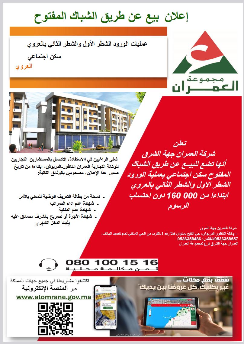 Home»شركة العمران جهة الشرق : اعلان بيع عن طريق الشباك المفتوح / عملية الورود الشطر الأول والشطر الثاني بالعروي سكن اجتماعي»omrane_arouiomrane_aroui2024-07-12/ 12/07/2024/0/ 370SharesFacebookTwitterPinterestGoogle+ Loading...Dans le même sujetفي نفس الموضوع