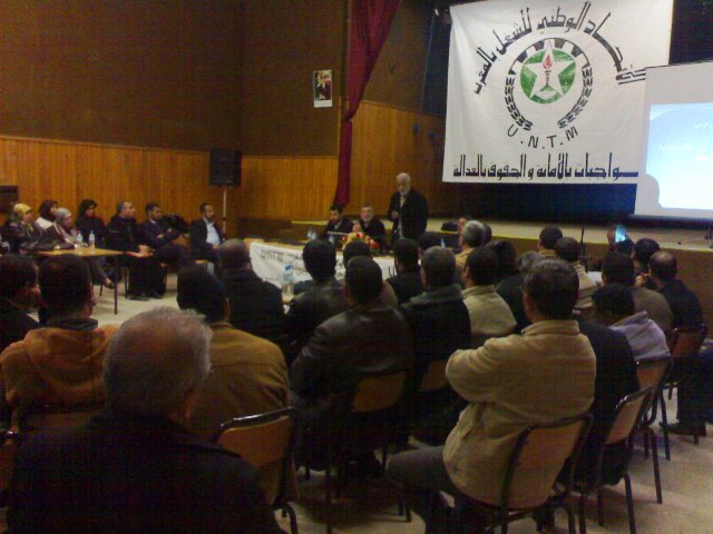 أجابت الكتابة الوطنية للاتحاد الوطني للشغل ممثلة في السادة محمد يتيم وعبد الإله الحلوطي ومحمد مريمي ومحمد البرودي عن مجموعة من انشغالات الشغيلة بالجهة الشرقية وذلك خلال المجلس الجهوي للاتحاد. وبمناسبة هذا اللقاء التواصلي المنعقد بدار الشباب ابن سينا صبيحة الأحد 23 نوفمبر، ألقى الكاتب الوطني للنقابة الأستاذ محمد يتيم عرضا بعنوان » رسالية التعاقد من أجل ربح رهان التمثيلية » استعرض خلاله أهم المبادئ التي تتأسس عليها المركزية وهي الأخوة والموالاة والتضامن والتضحية وأداء الواجب قبل المطالبة بالحق، مشيرا إلى الإضافة النوعية التي ساهمت بها النقابة من أجل تخليق العمل النقابي الذي يعرف تراعا دوليا وليس وطنيا فحسب. هذه الأواصر هي « القوة الضاربة للاتحاد » يقول المتحدث الذي اعتبر الفضاء النقابي فضاء للتعارف والتعاون والتكافل مذكرا بالحديث الشريف (ابغوني في الضعفاء فيكم) وبمقولة جمال البنا » الحركة النقابية حركة إنسانية ». بعد ذلك شرح للحضور فلسفة التعاقد بين الوطن والجهة على أساس أهداف محددة ينبغي تحقيقها وعلى رأسها كسب رهان التمثيلية في استحقاقات ماي 2009 الخاصة بممثلي المأجورين.