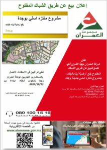تعلن شركة العمران جهة الشرق انها تضع للبيع عن طريق الشباك المفتوح بقعا ارضية لبناء فيلات بمشروع منتزه اسلي بمدينة وجدة