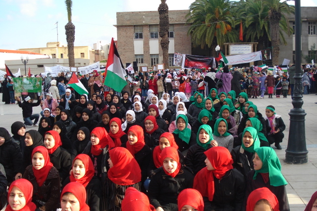 الشعب الفلسطيني في غزة بدعوة من الهيئات النسوية للحركات الإسلامية وبعض