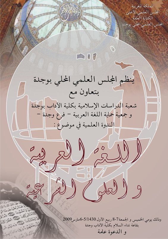 نظم المجلس العلمي المحلي بوجدة بمشاركة شعبة الدراسات الإسلامية بكلية الآداب بوجدة ، وجمعية حماية اللغة العربية فرع وجدة ندوة علمية محورها » اللغة العربية والعلوم الشرعية » خلال يومي الخميس والجمعة 5 و 6 مارس2009 وكان برنامج الندوة كالآتي :