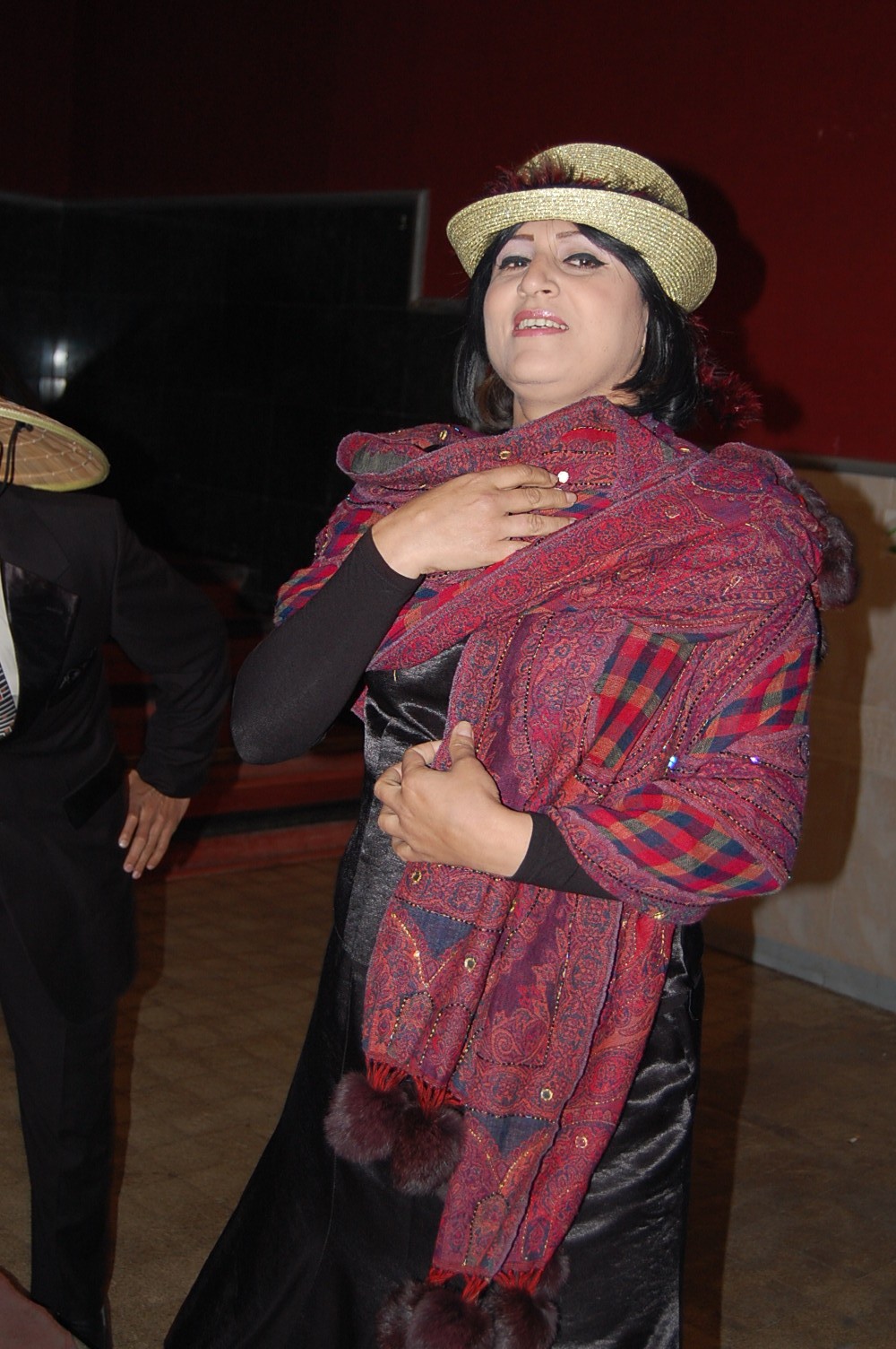 بالنسبة مشاركتي كامرأة لا في مسرح الحي ولا في مسرح الكاف،رغم أنه يقال إنني المرأة الوحيدة في المسرح، فأنا لا أحشر نفسي ولا أفرض نفسي على أحد. فأنا ممثلة ولست بخياطة أو طرازة، أنا ممثلة، والنصوص التي تطرح،لا يكون دوري من خلالها مبني أو محشور بحكم أنني زوجة المخرج…فبالعكس أنا بعيدة كل البعد عن هذه الأشياء، ومؤخرا طُِرحَتْ مسرحية بدون عنصر نسوي واقْتُرح على الكاتب إقحام دور نسوي، وأقولها بكل صراحة، لمّا اطّلعْت على الدور ووجدته مقحما رفضته رفضا باتا قاطعا، وأرفض رفضا باتا أن يخلق الدور لإرضائي. وإذا لم يكن هناك دور هادف مبني وشخصية مركبة، فلن أدخل في اللعبة لأن الجمهور المغربي ذكي وحين يشاهد المسرحية والأدوار يدرك بسرعة الأشياء…