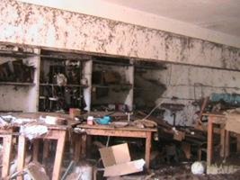 ** الخط الأسود في الصورة بجانب السقف هو المنسوب الذي بلغته المياه بقاعة المختبر