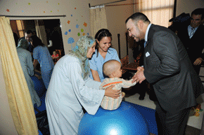 Des explications ont été ainsi fournies à S.M. le Roi sur cet hôpital psychiatrique qui sera édifié à Dhar Lamhalla sur une superficie couverte de 6.953 m2, pour un investissement de 24 millions de dirhams, dont 22 millions pour la construction. La réalisation de cette unité hospitalière, qui remplacera l’actuel hôpital devenu vétuste, s’effectuera sur deux tranches, dont la première, qui s’étalera sur environ une année, portera sur les gros oeuvres. Le futur hôpital comprendra des services d’urgence, de psychophysiologie, de psychothérapie de groupe, d’ergothérapie et de plusieurs salles d’éveil (travaux manuels, salle de lecture, de jeux et espaces verts) ainsi que d’unités pour le traitement de la toxicomanie et des personnes âgées, outre les locaux administratifs et les espaces récréatifs. Les services de cette structure hospitalière, qui prendra en charge les malades psychiatriques de la région de l’Oriental, seront assurés par un staff médical composé notamment de 3 médecins, 40 infirmiers et infirmières, en plus d’un staff paramédical et des cadres administratifs. Par la suite, S.M. le Roi a inauguré, au quartier Lamsalla, le centre orthopédique et de rééducation fonctionnelle pour handicapés, qui a nécessité un investissement de 8,25 millions de dirhams.