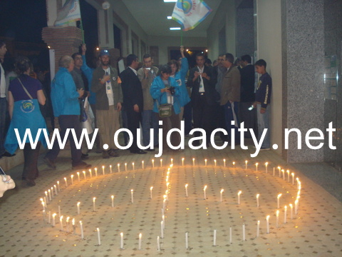 Après Berkane,capitale des orangers et des clémentines qu’ont dégustés les participants ,le convoi s’est dirigé vers la capitale de l’oriental ,en occurrence Oujda dont une grande cérémonie a été organisé par la coordination locale de la MM . un emblème de la paix avec des bougies ,une exposition de dessins et d’arts plastiques , ,une soirée musicale ciblée ,sont réalisés par la société civile de la ville d’Oujda . Ont assisté à cet événement des élus de la commune urbaine présidée par le député parlementaire Mr Omar Hjira président de la commune urbaine d’Oujda ; ainsi des chefs des services extérieurs , la presse locale et nationale et un public si nombreux et si chaleureux pour accueillir à bras ouverts l’équipe de base .