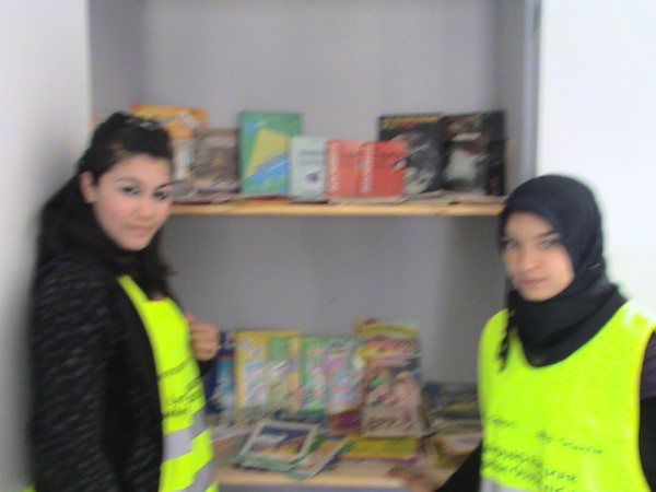 Pendant la dernière visite du mardi passé , les élèves ont distribué des fournitures scolaires aux élèves et installé une petite bibliothéque à l’école ; ils ont aussi organisé des activités culturelles et sportives. La visite a été clôturé par une cérémonie de thé organisée par l’école en l’honneur des présents . Les élèves du lycée Oued Eddahab ont aussi noté quelques problèmes que vit cette école à Béni- Oukil et surtout : l’absence d’ électricité et le manque d’eau potable .