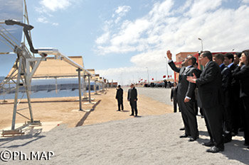 SM le Roi inaugure la centrale thermo-solaire à cycle combiné intégré d\’Ain Béni Mathar, d\’un coût global de 4,6 milliards DH