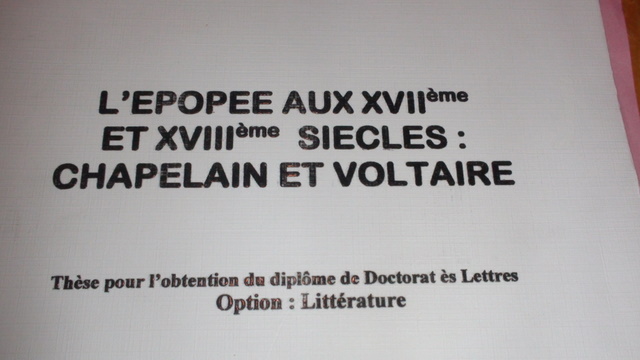 Soutenance de thèse de doctorat:/ L’épopée au XVIIè et XVIIIè siècle:Chapelain et Voltaire