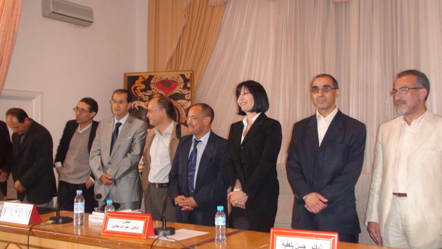 Ala facuté des lettres d’Oujda dans la salle Nidaa aSSALAM La candidate Najat Bougdime a soutenu sa thèse de doctorat sous le thème « L’épopée au XVIIè et XVIIIè siècles :Chapelain et Voltaire » devant un jury composé de quatre membres :le président du jury ,le docteur Hammouti Abdellah,le directeur des travaux de la thèse le docteur Jarhnine Abdellah,le docteur Benhakeia Hassan et le docteur Dziri Rachid.Nombreux sont les amis et collègues ainsi que les étudiants qui sont venus pour assister au débat du jury et encourager la candidate Najat Bougdime.Il s’agit de démontrer pour la candidate que ,si l’épopée avait connu ses moments de gloire dans l’antiquité ,depuis gilgamech jusqu’au XVIè siècle ,en passant par le Moyen-Age,elle a connu un échec au XVII et XVIII è siècle.Cet échec était dû à l’évolution des esprits et des genres littéraires ou la tradition orale était dominée et supplantée par l’écriture de nouveaux genres littéraires comme le théâtre au XVIIè siècle et le roman au XVIIIè siècle.Les membres du jury ont bien su commenté ,analysé,corroboré le bien-fondé de la thèse de la candidate tout en faisant des remarques pertinentes.Après avoir délibéré ,ils ont félicité la candidate avec la mention très honorable!Ala fin ,il s’en est suivi