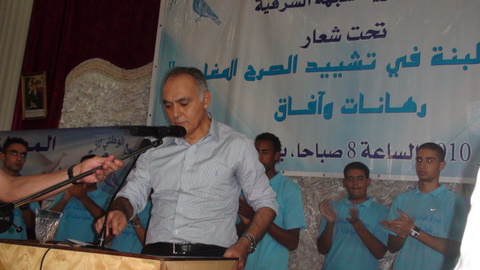في نفس القاعة ـ النخيل ـ بطريق الحدود المغربية الجزائرية التي ترأس فيها فؤاد عالي الهمة قبل سنة تجمعا جماهيريا لحزبه الأصالة والمعاصرة … نظم حزب التجمع الوطني للاحرار خلال السبت الأخير 25 شتنبر 2010 الجامعة الجهوية تحت شعار » الجهوية لبنة في تشييد الصرح المغاربي رهانات وآفاق » تحت الرئاسة الفعلية لصلاح الدين مزوار رئيس التجمع الذي تقدم بكلمة تحدث فيها عن الخطوط العريضة لتوجهات الحزب ، ومبادئه ، وطموحاته ، وبرنامجه … كما لم يفت مزوار الاشادة بالرئيس المؤسس للحزب احمد عصمان ، كما تأسف على غياب مصطفى المنصوري عن هذا التجمع الجماهيري الكبير، وفي حديثه عن الجارة الجزائر اعتبر مزوار ان جيراننا صار لا هم لهم الا احتراف طعن المغرب في الظهر كلما سنحت لهم الفرصة لذلك قائلا » طعننا في الظهر بلغ مداه مؤخرا بالإرهاب الممارس على أخينا مصطفى سلمة ولد سيدي مولود لمجرد أنه عبر عما يخالج مواطنينا المحتجزين في تندوف من دعم لمشروع الحكم الذاتي في أقاليمنا الجنوبية » واغتنم رئيس التجمع هذه المناسبة ليدين اختطاف مصطفى سلمة من طرف عصابات البوليزاريو والمخابرات الجزائرية ، مطالبا باطلاق سراحه عاجلا ، بالاضافة الى فك الحصار عن مخيمات تندوف