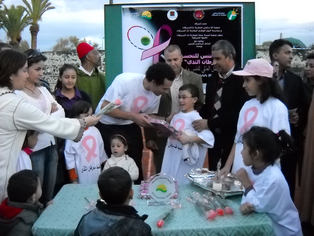 « تنظم جمعية لمسة شفاء لمحاربة داء السرطان بالجهة الشرقية، اليوم، بتعاون مع النادي الرياضي للتنس بوجدة وتحت إشراف جمعية لالة سلمى لمحاربة داء السرطان دوريا تحسيسيا بداء سرطان الثدي وذلك بمناسبة اليوم الوطني لمحاربة داء السرطان »، توضح للجريدة صباح طيبي رئيسة جمعية »لمسة شفاء » لمحاربة داء السرطان بالجهة الشرقية. وأشارت رئيسة الجمعية إلى مجموعة من الأنشطة التي تم تنظيمها من أجل نفس الهدف تمثلت في عدد من التظاهرات الرياضية والثقافية وقوافل طبية للفحص المبكر، »وفي كلّ مناسبة أو يوم تحسيسي نحاول أن نبتكر تظاهرة بإمكانها أن تستقطب عددا من الناس لإيصال المعلومة للجميع ».