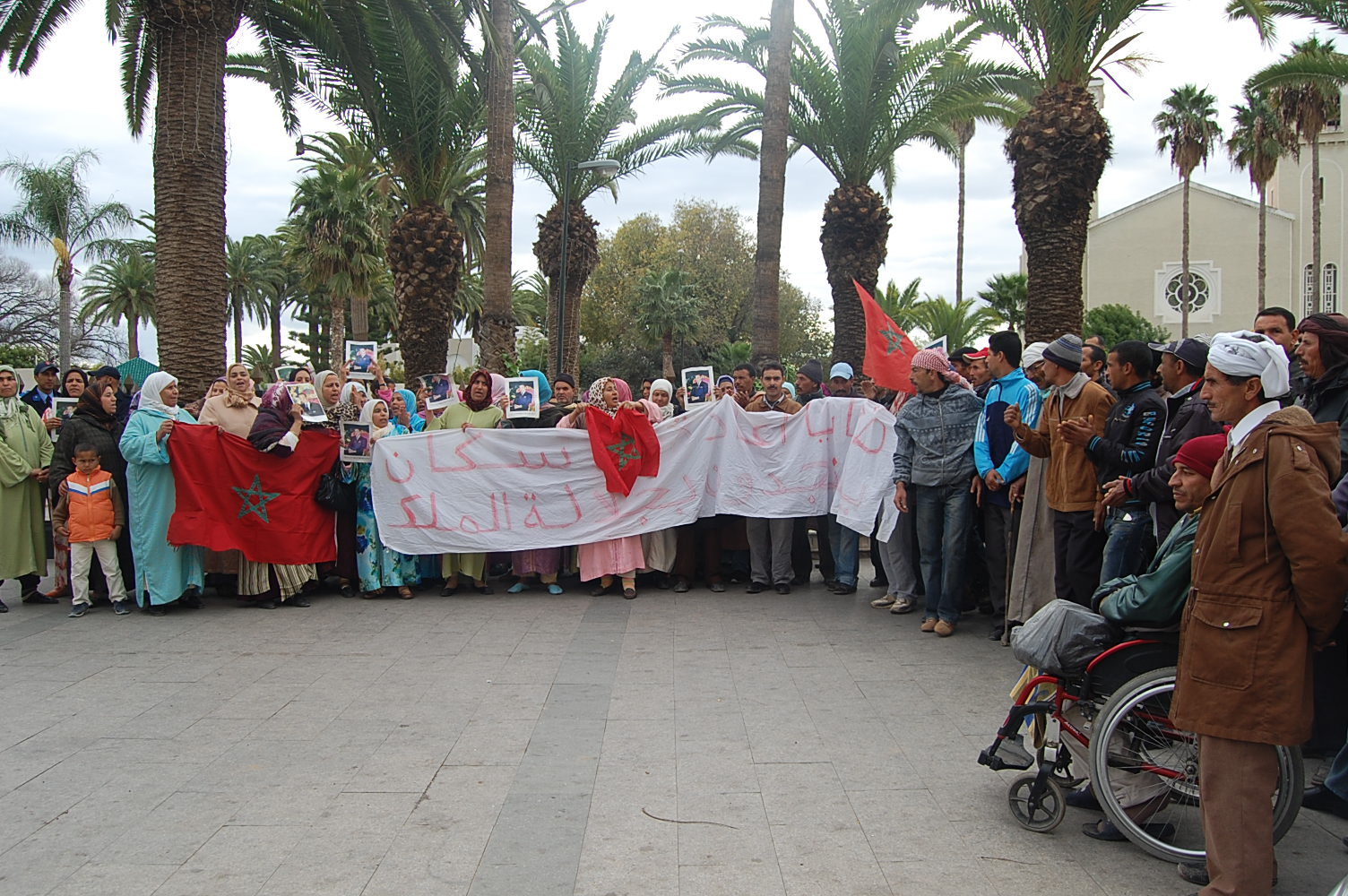 كانت علامات الوجوم والقلق والحزن والخوف بادية على وجوه هؤلاء السكان المغلوبين على أمرهم المهددين في طمأنينتهم وأمنهم وسلامتهم لا يعرفون أي وجهة يستقبلون، وكانوا يصرخون بهمومهم لمن أراد أن يسمعهم، عبر ترديد شعارات غاضبة وصارخة لمدة ثلاث ساعات، من الساعة التاسعة صباحا إلى حوالي منتصف النهار، شعارات تنديدية واستنكارية لعدم الالتفات لأوضاعهم بل توريطهم فيها، من قبيل «واش حنا مسلمين؟ من ديورنا مطرودين» و»لا خدمة لا معين، باش يعيش المسكين» و»سيدنا وْهَّب لِنا، وانتما ادِّيتو لِنا» و»ها هما المواطنين، فين غابو المسؤولين؟» و»فين حقوق الإنسان؟ هاذ الحي كامل جيعان»…