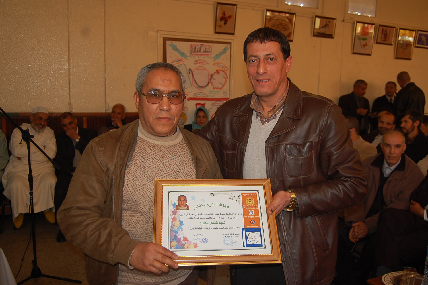 وبهذه المناسبة تمّ تكريم الأساتذة محمد الإدريسي وأحمد الصادقي وميمون بوزغود وعبدالعزيز قجعيو وامحمد بن عبو والعمراني العابد ومحمد بوعلي والحسين الساهل ومحمد لشكر والطيب الكيطوني ومحمد مالك والطيب المومني ومحمد قريش وأحمد بومريز ولخضر الصادقي وعبدالقادر كتـرة (وبصفته صحافي كذلك مواكب للأوضاع التعليمية وتطوراتها إعلاميا)، قيلت في حقّهم شهادات اعتراف وامتنان مؤثرة وجميلة لما أسدوه لقطاع التربية والتعليم من خدمات جليلة طيلة مشوارهم الطويل