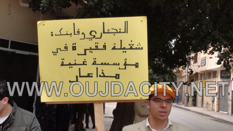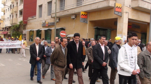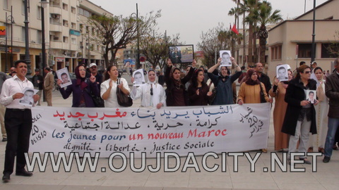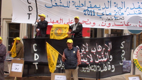 Le  1er mai 2011 fêté à Oujda comme dans  tout le Maroc s’est nettement  distingué des autres fêtes de travail des années précédentes.Ce premier mai avait des airs franchement révolutionnaires.On avait  remarqué la présence massive des adhérents et des adhérentes de différentes organisations syndicales (UMT,CGT,FDT,UNTM,UGTM….).A ces syndicats ,s’est ajouté un nouveau- né,le mouvement révolutionnaire 20 février qui n’a pas hésité à participer à cette marche festive du 1er mai.Il s’est imposé en insufflant une nouvelle dynamique aux revendications syndicales des salariés.