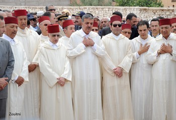 *Durant son enterrement j’étais debout à la limite de sa tombe pour lui faire les derniers adieux, quand Si Mohamed MOATASSIME Conseiller de sa Majesté eut lire dans un grand chagrin cette célèbre Lettre Royale où le défunt a reçu plus que des honneurs de la part de sa Majesté et quand Si Mohamed BELOUALI, un ancien élève de Taourirt, ancien professeur d’arabe au collège ALLAL B ABDALLAH vers la mi-60 et professeur ensuite à la faculté de Charia à l’Université Mohamed Premier d’Oujda, actuellement Président du Conseil des Oulamas de la Province, eut demandé à DIEU ses clémences, son pardon et sa miséricorde au cours d’une FATHA( APPEL à DIEU ) qu’il eut formulée dans un grand recueillement devant la tombe du défunt comme nos coutumes l’exigent, à coté du Prince Moulay RACHID entouré de ses proches, de personnalités officielles et non officielles , de gens ordinaires aussi, tous dominés par un sentiment de tristesse.