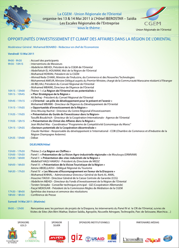 Home»National»Programme Escale CGEM de la Région de l’Oriental a saidiaNational/RégionalProgramme Escale CGEM de la Région de l’Oriental a saidiacgem2011-05-12cgem/ 12/05/2011/0/ 1.1k0SharesFacebookTwitterPinterestGoogle+ Programme Escale CGEM de la Région de l’Oriental a saidiaLoading...Dans le même sujetفي نفس الموضوع الدكتور مصطفى بنحمزة في درس ديني حول تزكية النفس ـ فيديومركز تخييم الكهربائيين بالسعيدية بين التقادم والإهمال ؟؟؟Le monde arabe Une nouvelle ère d’études archéologiquesالدوري الدولي للتكواندو – وجدة / بلاغ صحفي الدورة الأولى الموسم الصيفي للسعيدية