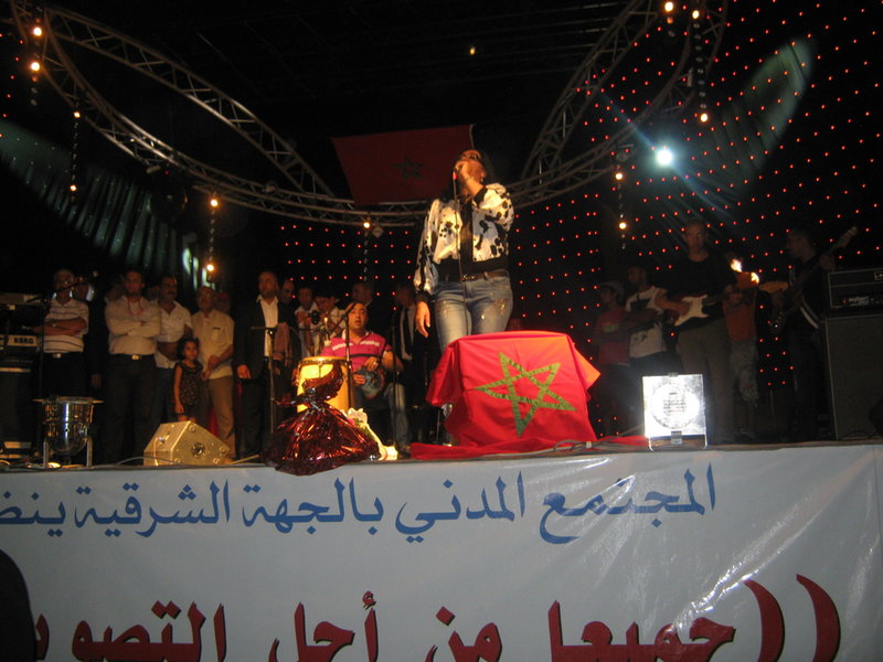 أحيت الفنانة الجزائرية الشابة الزهوانية سهرة فنية كبرى مساء يوم الأربعاء بساحة زيري بن عطية- إعدادية باستورسابقا-على هامش اللقاء والتجمع الجماهري الكبير الذي سهرت على تنظيمه فعاليات المجتمع المدني يمثلون مدن الجهة الشرقية والأقاليم الصحراوية، إضافة إلى جمعيات من مدينة مليلية السليبة حيث فاق عددهم 90 جمعية ،ويندرج هذا اللقاء في إطار دعم مشروع الدستور المطروح للاستفتاء على الشعب المغربي في فاتح يوليوز،وشرح مضامينه وقد قدرت بعض الجهات المنظمة لهذا اللقاء عدد الحاضرين بأكثر من 10آلاف مواطن ومواطنة أتوا من مختلف المدينة ، ضاقت بهم جنبات ساحة زيري التي لم تستطع استيعاب ذلك الكم الهائل من المواطنين الذين حجوا بكثافة