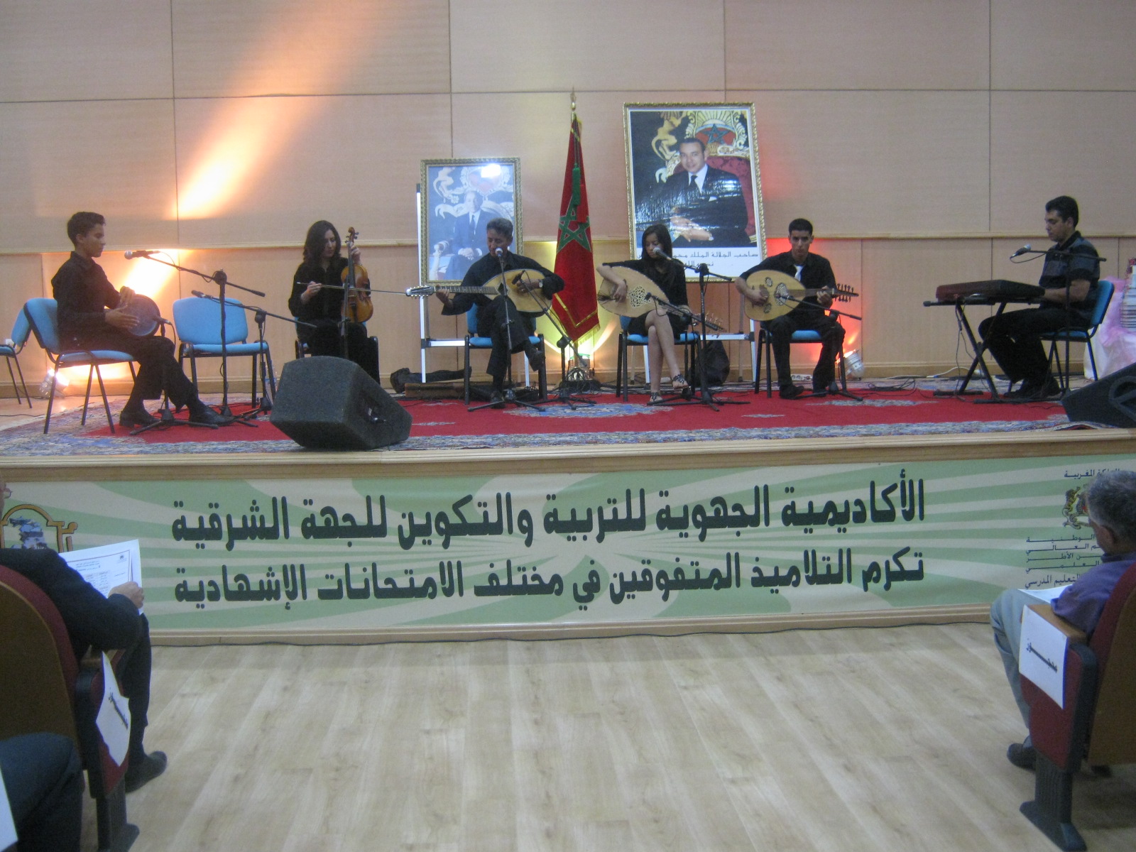 تخليدا للذكرى الثانية عشر لعيد العرش المجيد ،وتكريما للتلاميذ المتفوقين نظمت مساء يوم الأربعاء 20يوليوز أكاديمية الجهة الشرقية للتربية والتكوين حفلا متميزا على شرف التلاميذ والتلميذات المتفوقين برسم الموسم الدراسي على اختلاف أسلاكهم الدراسية من ابتدائي وثانوي وكذا وبعض الأنشطة الموازية كالبيئة والرياضة وغيرها من الأنشطة التي تعرفها المؤسسات التعليمية على مدار السنة تحت شعار « جميعا من أجل مدرسة النجاح »