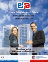 L’Ecole Française des Affaires, établissement français installé au Maroc depuis 1988, organise la première session de son concours d’entrée. Pour rappel, l’EFA est sous la tutelle de l’Ambassade de France et de la Chambre Française de Commerce et d’Industrie du Maroc (CFCIM) et délivre un diplôme français bac+2 de Technicien Supérieur en Commerce et Gestion .