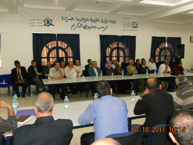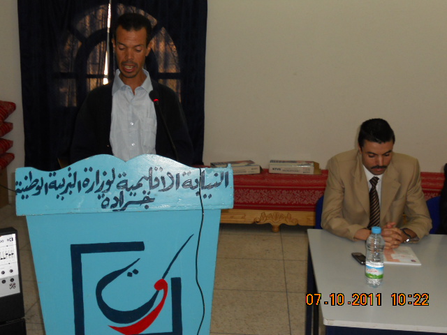 نظمت النيابة الإقليمية بجرادة صباح يوم الجمعة 05 أكتوبر 2011 بقاعة الاجتماعات حفلا إقليميا بمناسبة اليوم العالمي للمدرس افتتحه السيد النائب الإقليمي بكلمة ترحيبية أشاد فيها بعيد المدرس الذي اعتبره مناسبة قمينة بكل تقدير يقف فيها العالم بأجمعه إجلالا للمعلم على خدماته الجليلة وتضحياته الجسيمه لتنوير العقول بنور العلم المبدد لظلام الجهل والأمية. وقد قدم السيد النائب الإقليمي ورقة حول النتائج الدراسية التي تحققت في الموسم الدراسي المنصرم مرجئا إياها إلى الجهود المتضافرة لمختلف الفاعلين وعلى رأسهم المدرسات والمدرسين،مشجعا إياهم على مزيد من البذل والعطاء خدمة للناشئة، منوها بجهودهم المبذولة خصوصا العاملين منهم بالوسط القروي. وقرأ السيد النائب الإقليمي رسالة السيد وزير التربية الوطنية والتعليم العالي وتكوين الأطر والبحث العلمي للمدرسين والمدرسات بالمناسبة، متوقفا عند دلالاتها العميقة وتوجيهاتها القيمة.كما ذكر بمحتويات رسالة السيد مدير الأكاديمية الجهوية للتربية والتكوين للجهة الشرقية بالمناسبة وهي التي تصب في تثمين جهود المدرس وتشجيع مساعيه النبيلة. وأعطيت الكلمة ، عقب الكلمة الافتتاحية للسيد النائب، للأستاذ علي العمري من مجموعة مدارس سيدي داود بعين بني مطهر ألقاها باسم رجال التعليم ونسائه احتفاء بهذا اليوم الجدير بكل اعتزاز، تلتها كلمة السيد يحيى سامر مدير ثانوية ابن الهيثم الإعدادية بجرادة عن هيأة الإدارة التربوية، فكلمة السيد مصطفى علوي رئيس جمعية آباء وأمهات وأولياء التلاميذ بثانوية الزرقطوني التأهيلية عن جمعيات الآباء، وكلمة السيد محمد اوعلي عن الشركاء الاجتماعيين. وقد ركزت الكلمات المختلفة على تجسيد الدور الكبير الذي تضطلع به هيأة التدريس بما يجعلها أهلا لكل تقدير واحترام. واختتم الحفل بقصيدة شعرية ألقاها السيد محمد زروقي رئيس مصلحة الشؤون التربوية وتنشيط المؤسسات احتفاء بالمناسبة العزيزة، حملت في أبياتها باقات عرفان بجهود المدرس وأفضاله الخالدة.