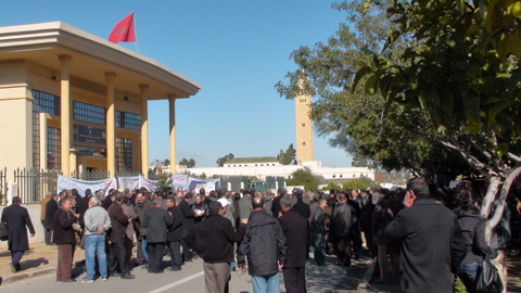 استمرارامنها في مواصلة برنامجها النضالي ، خاضت  صباح يوم  الخميس 19_01_2012  الجمعية الوطنية لمديرات ومديري التعليم الابتدائي بتنسيق مع نظيرتها جمعية مديري التعليم الإعدادي و الثانوي للجهة الشرقية ، أمام الأكاديمية  الجهوية للتربية والتكوين من الساعة 10 و 30 دقيقة إلى 11 و 30 دقيقة   وقفة احتجاجية  ،  ولعل هذا مما ميز الحدث لأن المطالب مشتركة بين الأسلاك الثلاثة ، كما شارك من أجل المساندة بعض الإطارات النقابية مشكورة وجمعيات مدنية وحقوقية ، وقد حج المديرون والمديرات عن آخرهم من كل أقاليم الجهة الشرقية ،  حيث رفعوا شعارات مختلفة تصب كلها في اتجاه المطالبة  بانتزاع الحقوق مهما طال التماطل ،  وكانت الوقفة  بمثابة رسالة  للجهات التي تحاول الاستخفاف بالجمعية أنها واهمة ، وان دواليب ألأكاديمية ماكانت لتشتغل لولا مجهودات المدير، وأن المدير ماكان ليتخلى عن حقه مهما كان الثمن ، وأن المدير يدرك أنه في زمن الحق والقانون ولا أحد مهما كان ومن كان يعتبر خارج دائرة القانون ….