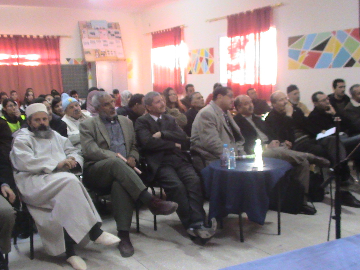 أفتتح اللقاء بآيات بينات من الذكر الحكيم ،وأخذ بعد ذلك الكلمة السيد النائب الاقليمي الذي أثنى على الأطر التربوية والإدارية بالمؤسسة وشكرهم على كل ما يبذلونه من جهد   من أجل عملية تربوية ناجحة،كما أكد على أهمية ألأنشطة التربوية  في حياة المتعلم.ولم يخفي السيد النائب إعجابه  بكل ما تبذله ألأطر التربوية  في هذا الإطار .كما أكد السيد النائب على ضرورة تفعيل قاعة المتعددة الوسائط  لتجنب الرتابة والملل واستغلالها بشكل عقلاني حتى يستفيد منها  أكبر عدد من التلاميذ . وتناول بعد ذلك الكلمة السيد مدير المؤسسة الذي رحب  بالسيد النائب الاقليمي وكل الحاضرين  كما شكر الأطر التربوية التي تسهر على الأنشطة التربوية .وبعد ذلك قام الأستاذ ميمون  يوسفي أستاذ التربية البدنية بعرض تجربته  من خلال عرض شريط  والتعليق عليه .لقد نالت هذه التجربة إعجاب الجميع  حيث تمكن الأستاذ يوسفي  من تطوير أدائه المهني من خلال إدماج  تكنولوجيا المعلومات والاتصالات في تدريس مادة التربية البدنية.وبعد عرضه لهذه التجربة الرائدة  فتح باب النقاش  حيث تدخل العديد من الحاضرين، ومن أهم ما طرح بعض الصعوبات التي تحول دون استعمال القاعة المتعددة الوسائط   وكيفية  تجاوزها ،وفي هذا الصدد أكد السيد النائب على ضرورة تفعيل هذه القاعة  وتعميم  الاستفادة   . وتدخل كذلك عدد من التلاميذ الذين شاركوا في التجربة وتحدثوا عن هذه التجربة وأهميتها.  وفي تدخله أكد المنسق الجهوي لبرنامج GENIE عن ضرورة وضع برنامج   لتكوين ألأطر التربوية  على استعمال تكنولوجيا المعلومات  تحت إشراف  الأساتذة الذين خضعوا للتكوين  سابقا.كما أكد كل من المنسق الاقليمي والمستشار الجهوي على  ضرورة تعميم  التجربة على باقي المؤسسات التعليمية  .وأختتم اللقاء بحفل شاي على شرف المشاركين .
