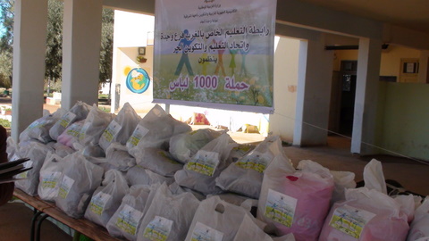 حيث يتم توزيع 750 لباس على تلاميذ مجموعة مدارس القاضي عياض – مجموعة مدارس محمود درويش – مجموعة مدارس الامام الشافعي.