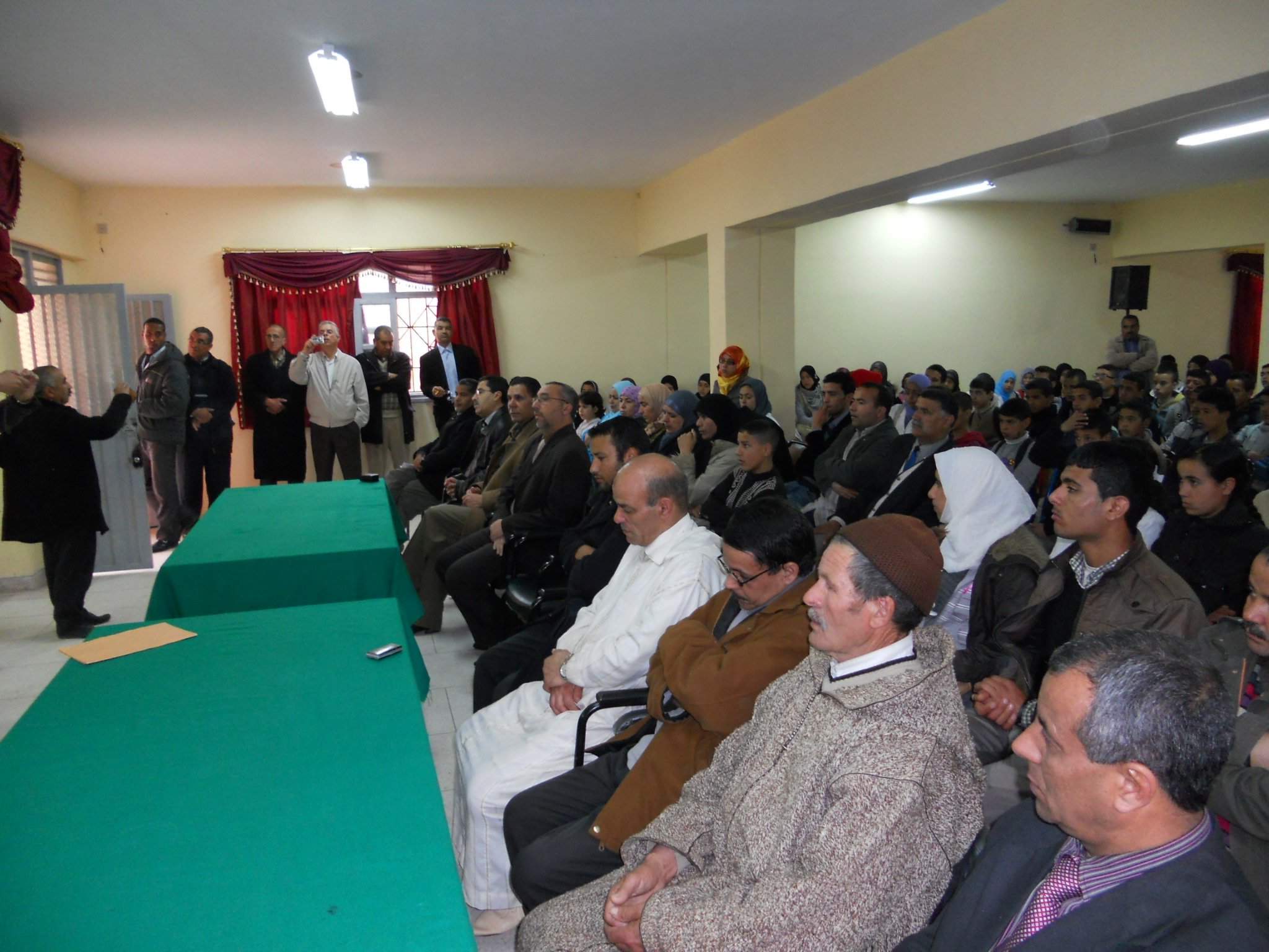 نظم الحفل بقاعة المؤسسة، وبحضور السيد جمال مزيان النائب الإقليمي لوزارة التربية الوطنية بنيابة تاوريرت والوفد المرافق له من مسئولين بالنيابة والسيد رئيس الجمعية المغربية لحقوق الإنسان بالإقليم والسيد رئيس جمعية آباء وأمهات وأولياء التلاميذ وفاعلين آخرين وهيئات من المجتمع المدني، وممثلي الصحافة الوطنية والجهوية بالإقليم وثلة من الأساتذة ، وكدا بعض مديري المؤسسات التعليمية بالإقليم، طبعا بالإضافة إلى عائلة الفقيد ودوي التلميذتين وجمع من تلاميذ وتلاميذ المؤسسة وأصدقائهم .