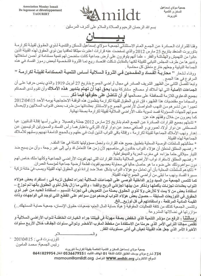 جمعية مولاي اسماعيل للسكن والتنمية تاوريرت  وقفة احتجاجية صباح يوم الأحد 15ابريل 2012 ( هي جمعية سلالية لكرارمة )