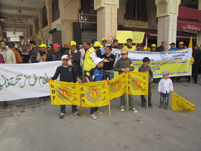 10- رفض ن و ت لمسالة اللف والدوران حول حق دستوري مشروع هو حق الإضراب من طرف حكومة بنكيران والذي أدانته المركزية النقابية ك د ش من خلال بلاغها الأخير الصادر عن المكتب التنفيذي فيما وصفته بمحاولة الحكومة فرض منهجية انفرادية ستؤدي إلى تفكيك متطلبات تطوير الأداء التعاقدي لمؤسسة الحوار الاجتماعي والدفع بالمطالب العمالية نحو الباب المسدود وان إصرار حكومة بنكيران على ضرب حق ممارسة الإضراب هو سابقة خطيرة ستكون نتائجها وخيمة مستقبلا وهذا ما يستدعي التكتل أكثر من اجل مواجهة مثل هذه الإجراءات والتصدي لرغبة الحكومة في فرض قانون الإضراب ومنع الاحتجاج السلمي الذي يبقى احد أهم الأسلحة في يد الطبقة العاملة التي تعاني من الاستغلال البشع والتفقير والمرض والجهل والأمية ومن ارتفاع الأسعار وتدني مستوى المعيشة وان التلويح باستعمال إلية الاقتطاع لن تحل المشاكل الاجتماعية بل هي من الأمور التي ستزيد من تفاقم الأوضاع وهو أمر غير مقبول ولا يمكن السكوت عليه .
