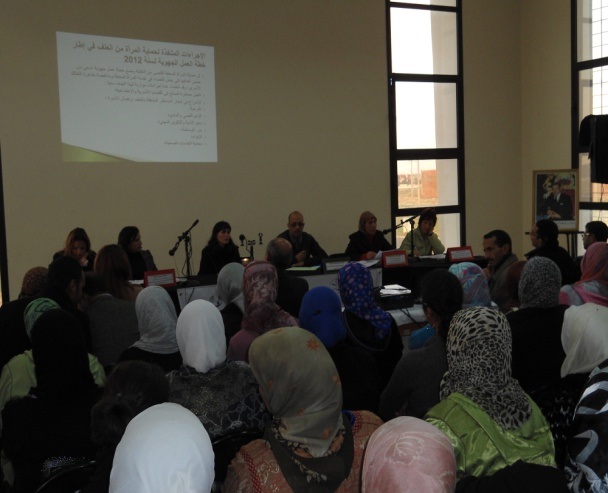 وقد ألقيت عدة مداخلات في موضوع العنف المبني على النوع الممارس على المرأة من طرف كل من رئيس الجمعية المغربية لتنظيم الأسرة الدكتور عبد اللطيف معمري والأستاذة كريمة إدريسي والسيدة سهام الداودي والأستاذة لطيفة رزوك وممثلة خلية المرأة لدى الاتحاد الوطني لنساء المغرب إلى جانب ممثلة الجمعية الاسبانية المشرفة على المشروع، وقد تمحورت هذه المداخلات حول المجهودات المبذولة من طرف الجهات المذكورة من أجل مناهضة العنف الممارس على المرأة ودعوة الجميع إلى الانخراط في برامج التوعية من أجل التقليص من حدته لأن العنف المذكور له آثار سيئة على الأسرة والمجتمع وانعكاسات سلبية على التنمية الاقتصادية للبلاد.