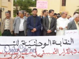 من المفارقات المثير للاستغراب أن يقف الفصيل النقابي : النقابة الوطنية للتعليم (ف.د.ش) في الموسم الدراسي الفارط في رحاب أكاديمية الجهة الشرقية لمؤازرة السيد مدير الأكاديمية في قضية خلقية وقعت أحداثها خارج أوقات العمل ومقره و لا علاقة لها بقطاع التربية ؛ وقد حسبت هذه الوقفة على هذا الفصيل ؛ واعتبرت باقي الفصائل النقابية والمهنية أن القضية بعيدة كل البعد عن قطاع التربية ؛ وأن المؤازرة عبارة عن تزلف مجاني لمسئول تربوي كان عليه أن يربأ بنفسه عن كل مل يخدش كرامته وكرامة القطاع من خلال تنكب كل مواطن الشبهة ؛ واليوم الجمعة 19 أكتوبر 2007 وقف نفس الفصيل النقابي ضد السيد مدير الأكاديمية وقفة احتجاجية على تعسف صدر منه ضد السيد رئيس مصلحة الامتحانات الذي تم إعفاؤه من مهامه على إثر مراسلة وجهها السيد المدير للمصالح المركزية يتهمه فيها بأنه اقتحم عليه مكتبه واستعمل الكلام النابي في حقه وحرض موظفي المصلحة على مغادرة مقر عملهم ؛ ومارس ما سماه تشنجات خلال الدورة الاستدراكية. وكانت الوقفة ما بين الساعة العاشرة والنصف إلى الحادية عشرة والنصف ؛ بحضور ناهز المائة موظف من قطاع التربية الوطنية ؛ ورفعت لافتتان تحمل شعار الفصيل النقابي مع عبارات التنديد بالقرار التعسفي في حق رئيس مصلحة الامتحانات ؛ والمطالبة بلجنة تحقيق وزارية . ورفعت شعارات تدين الممارسات اللامسئول للمسئول الجهوي الأول وتطالب برحيله ؛ وقد توليت شخصيا بطلب مني إلقاء كلمة مع أنني لست منتميا لهذا الفصيل عبرت فيها عن تضامني مع رئيس مصلحة الامتحان ضحية التعسف ؛ واعتبرت وقوفي مع المحتجين ضرورة من أجل تخليق الممارسات الإدارية داخل قطاع التربية الوطنية من خلال التذكير بالشروط المطلوبة في كل من ينتمي للوظيفة العمومية وعلى رأس هذه الشروط المروءة ؛ والتي كان غيابها سببا في وقوع الشطط في استعمال السلطة من لدن السيد مدير الأكاديمية الذي غضب لكرامته الشخصية ؛وداس على كرامة السيد رئيس مصلحة الامتحانات. وعرفت الوقفة أيضا كلمة السيد شفيق عز الدين الكاتب الجهوي للفصيل النقابي ( ف.د.ش)والتي نددت بالتعسف الإداري الحاصل من المسئول الجهوي ضد رئيس مصلحة الامتحانات. كما تلي البيان الصادر عن المكتب الإقليمي للنقابة الوطنية للتعليم الذي استغرب قرار إعفاء السيد رئيس المصلحة من مهامه على إثر تقرير من السيد مدير الأكاديمية عار عن الصحة مع الشهادة للسيد رئيس المصلحة بالكفاءة المهنية والنزاهة الوظيفية وحسن السيرة والسلوك ؛ وعزا البيان القرار التعسفي إلى خلاف شخصي بين المدير ورئيس المصلحة ليس غير؛ كما طالب بإلغاء هذا القرار فورا مع إجراء تحقيق من لجنة من المصالح المركزية للوزارة . وأعلن البيان تضامنه مع السيد رئيس مصلحة الامتحانات غير المحدود؛ ووعد بأن الأجهزة النقابية ذات الصلة بالقضية ستتدخل في الوقت المناسب حيال جميع التطورات الممكنة التي قد يطرحها هذا الملف.